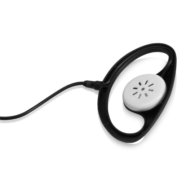 Denne leveres med 2 øreplugger, 1 med hel bøyle(D-ring) og 1 med halv bøyle(C-ring) Har peltortilkobling, og kan kobles direkte
